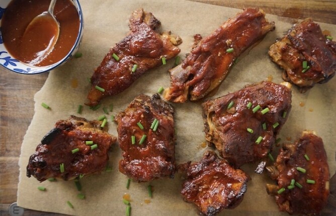 Serve with a sprinkle of chives or spring onions and any spare glaze on the side to drizzle over the bones before eating.