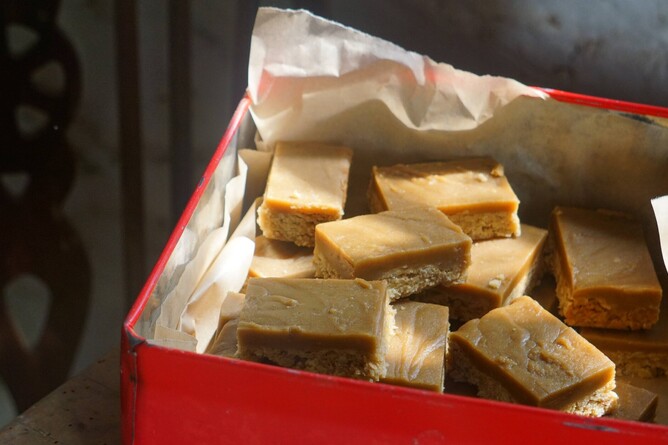 While the base cooks, prepare the icing. In the same small pot, heat the butter and golden syrup until melted and bubbling.