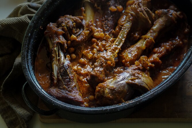 6-8 lamb shanks, or boned out lamb shoulder or lamb flap, cut into cubes